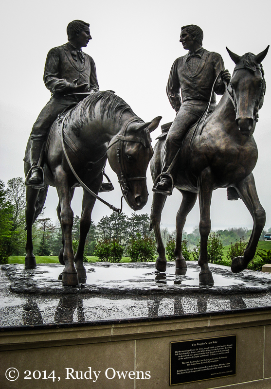 Statue of the Smith Brothers ← Previous The statue calls Joseph Smith a “prophet,” and also shows brother Hyrum Smith. Both were killed by a mob in nearby Carthage, Ill., in 1844, and this statue celebrates their final ride there.