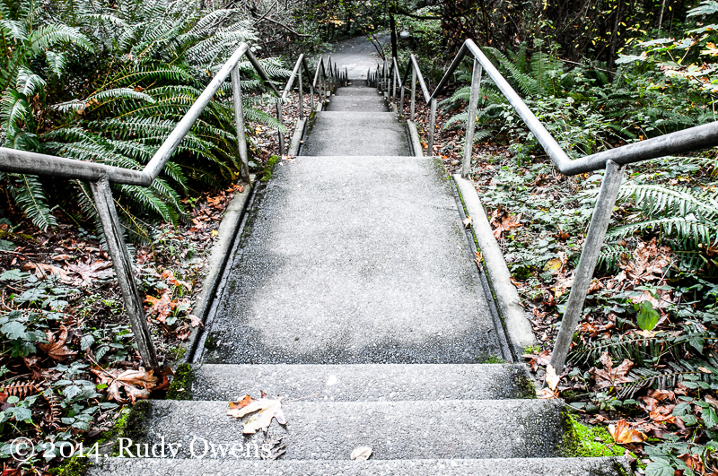 Stairs to Nowhere ← Previous There are stairs all over the park that are hidden, seldom used, and relics from the time it was a major military base in Seattle.