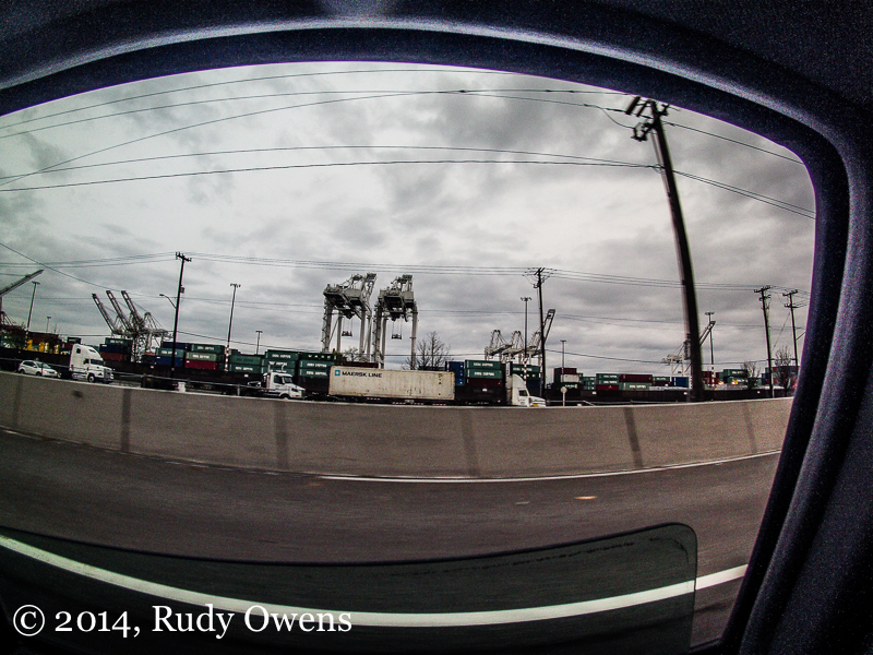 Port of Seattle ← Previous Next → A long line of trucks usually is found on the service road next to the port and visible from Highway 99 (2014).