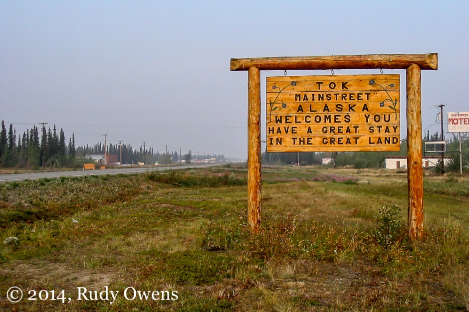 Welcome to the Great Land ← Previous My favorite sign in the whole world, I think, greets visitors driving into Alaska from Canada in the tiny junction town of Tok. Spent many memorable nights here over the years (taken in 2004).