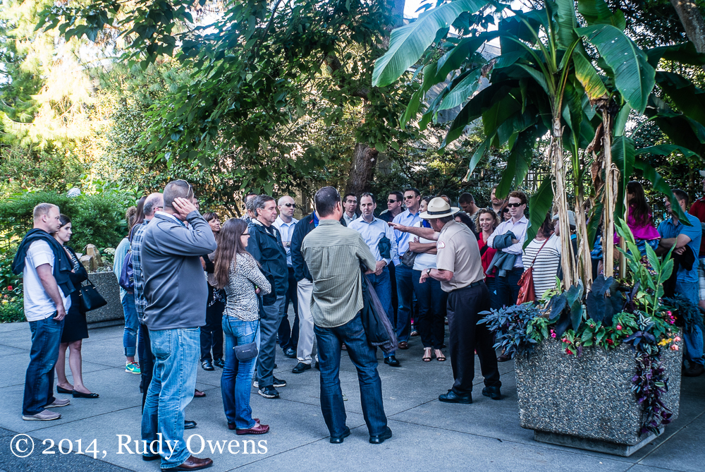 Tourists listen to an interpreter at the Ballard Locks, July 2014.