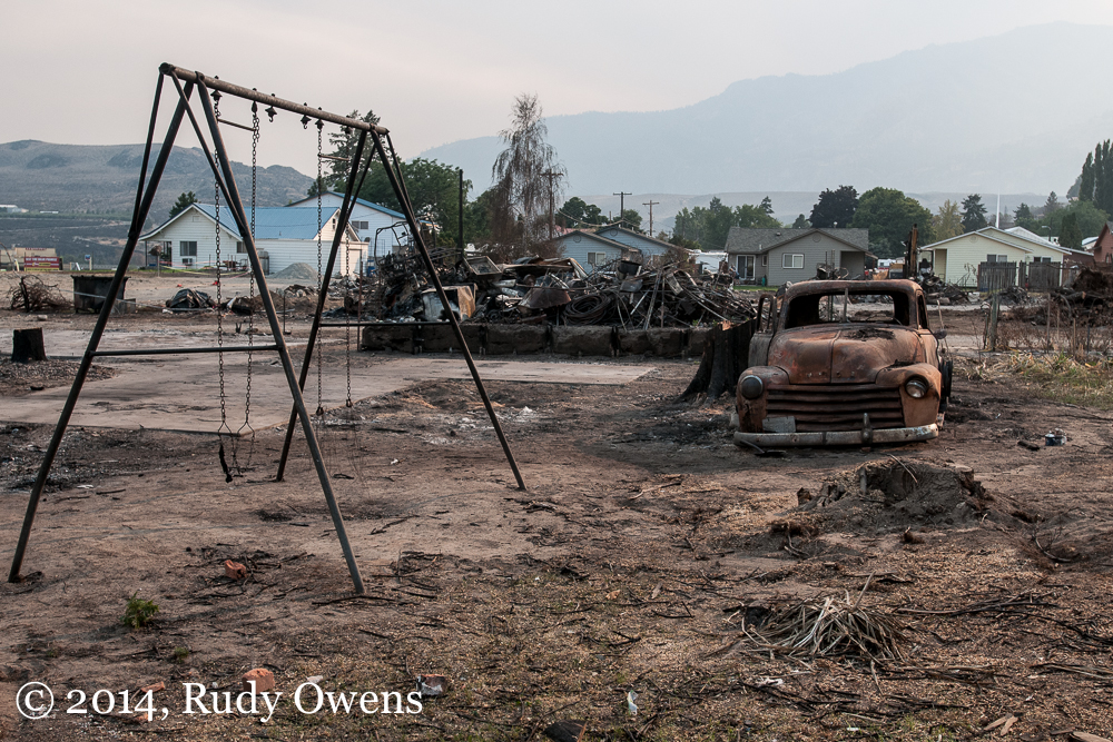 Pateros Destruction ← Previous Next → Pateros was the hardest hit single community, where wildfires burned a swath of homes after the flames raced down the hillside forcing residents to flee with almost no time to grab belongings.