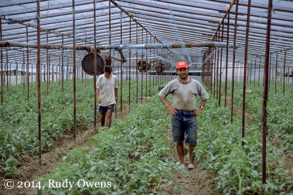 Laborers pause inside a hothouse in southern Turkey near Antalya.