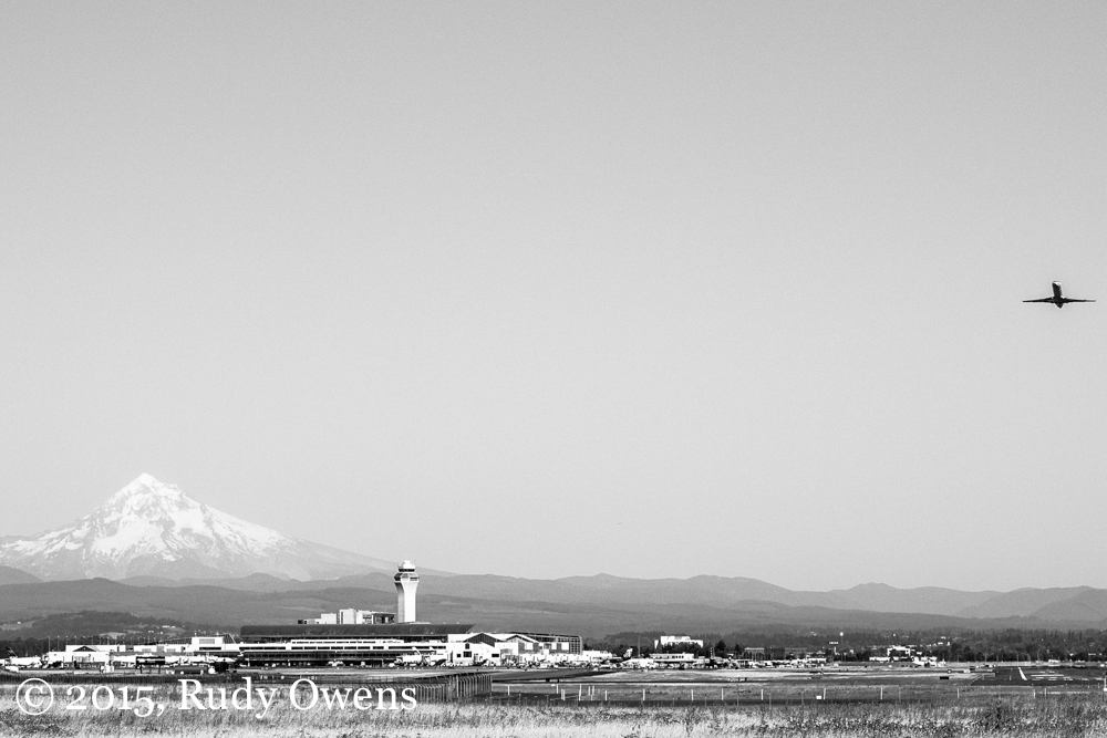 Portland International Airport An Alaska Airlines flight takes off on a beautiful June evening at the Portland International Airport.