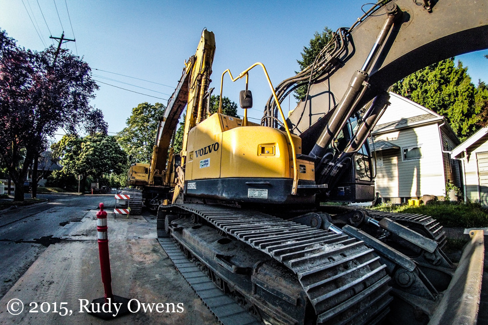 Idled construction equipment in Sellwood, in Portland.