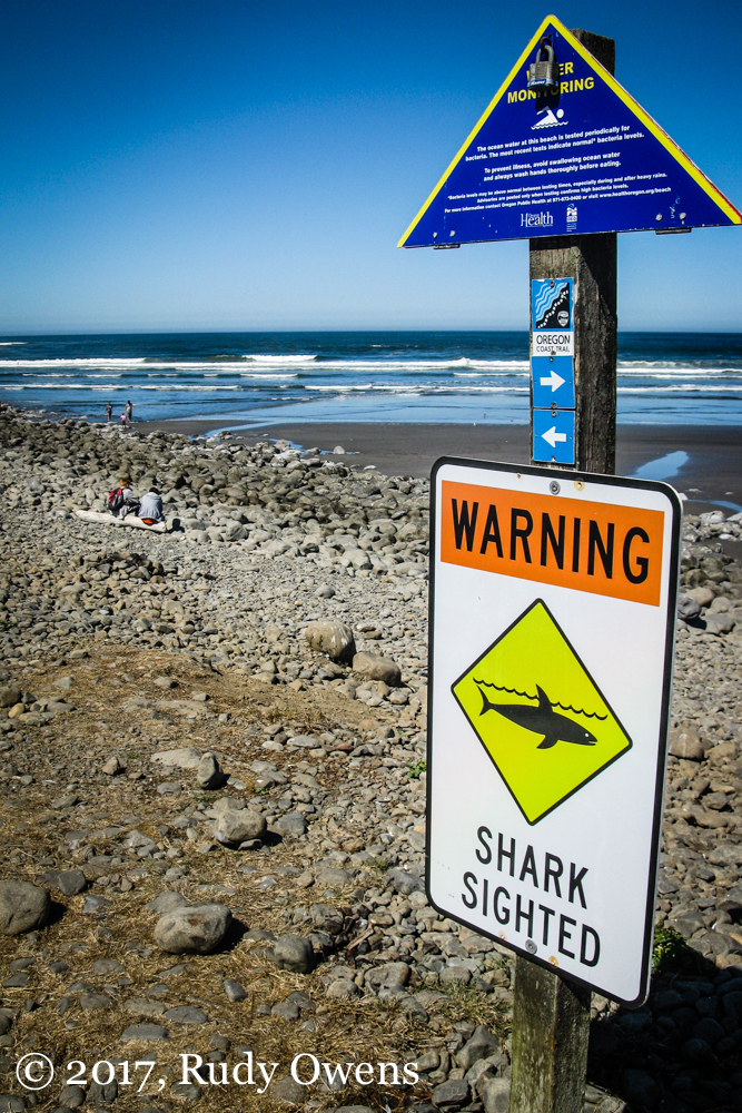 Shark warning sign at Seaside, August 2017