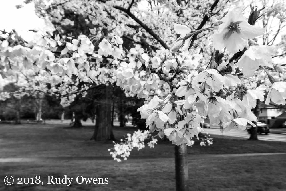 Cherry Blossom at Reed College (3-24-2018) B&W-5