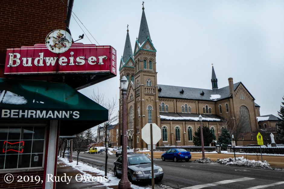 King of Beers and St. Anthony of Padua Church ← Previous In St Louis, residents can kneel and then raise a glass, all on the same block. This is a shot of the St. Anthony of Padua Catholic Church on Meramac and Behrmann’s Tavern.