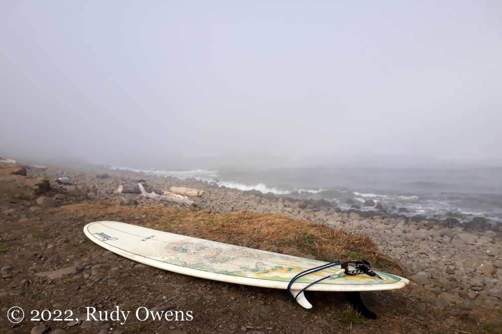 Oregon has seen freakishly warm October weather. On some of those warm days, when there is no rain, we will also see fog blanket the coast. That is what I found last weekend when I headed to Seaside, Oregon, one of my favorite Oregon surfing locales. It was a mild day in terms of wave energy and size, and I caught some nice rides. This is how it looked before I went in with my now-aging Stewart 9.3 ft. board. It still works.