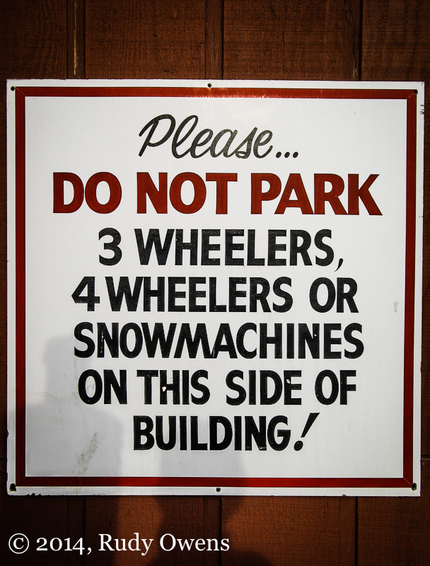 Parking sign, Kotzebue Off-road vehicles and snowmachines are the most common vehicles in Kotzebue (2008).