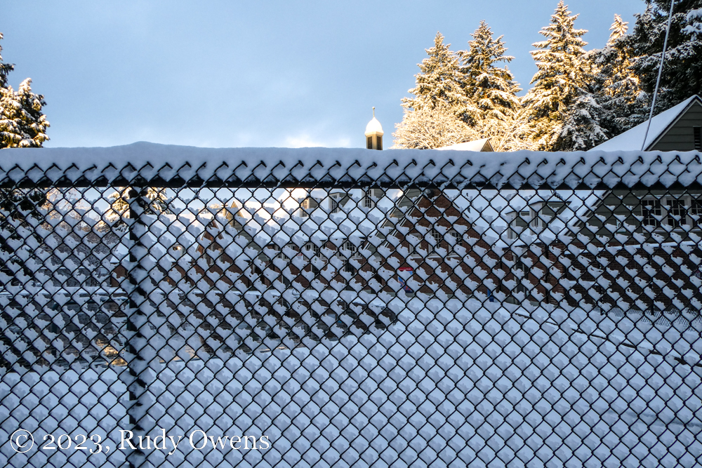 Before my workday began, I did a nice three-quarter mile walk in my neighborhood, snapping the proverbial winter shots I often do and relishing the snowy quiet.